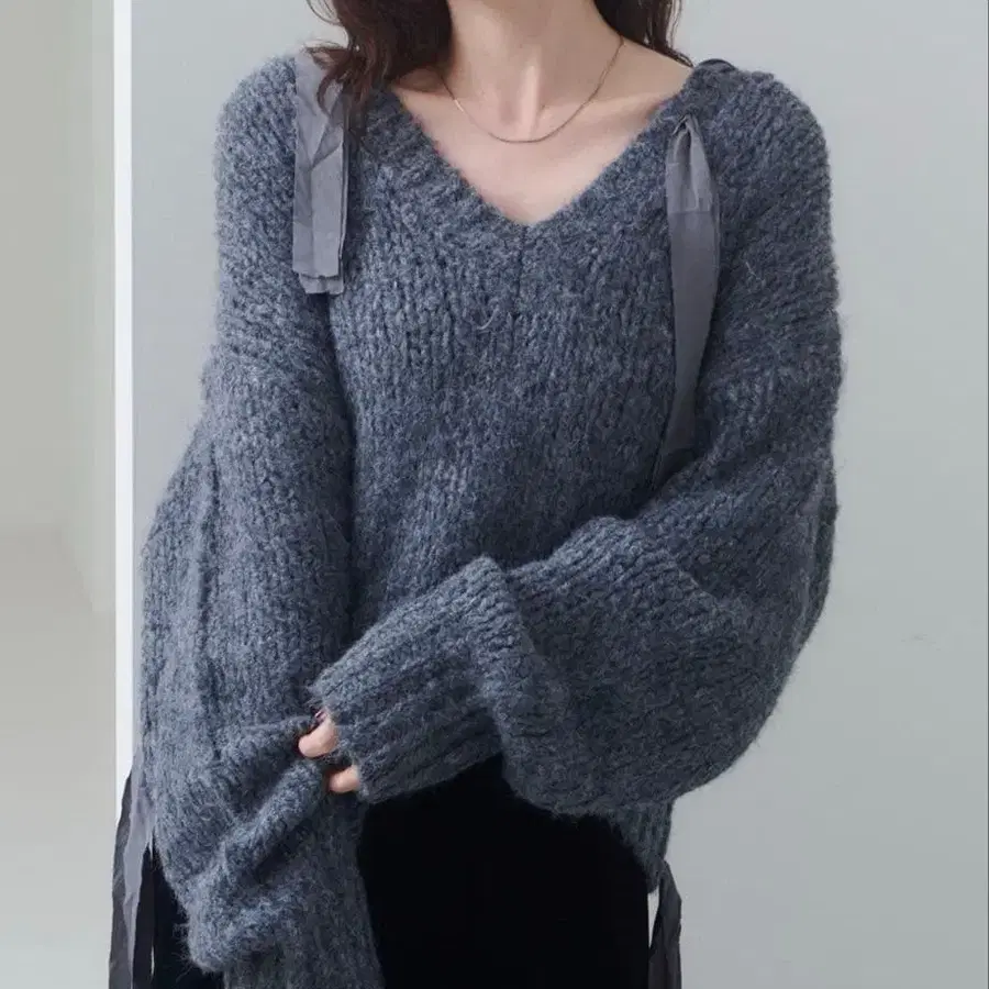 카스타네 리본 테이프 로우 게이지 숏 니트