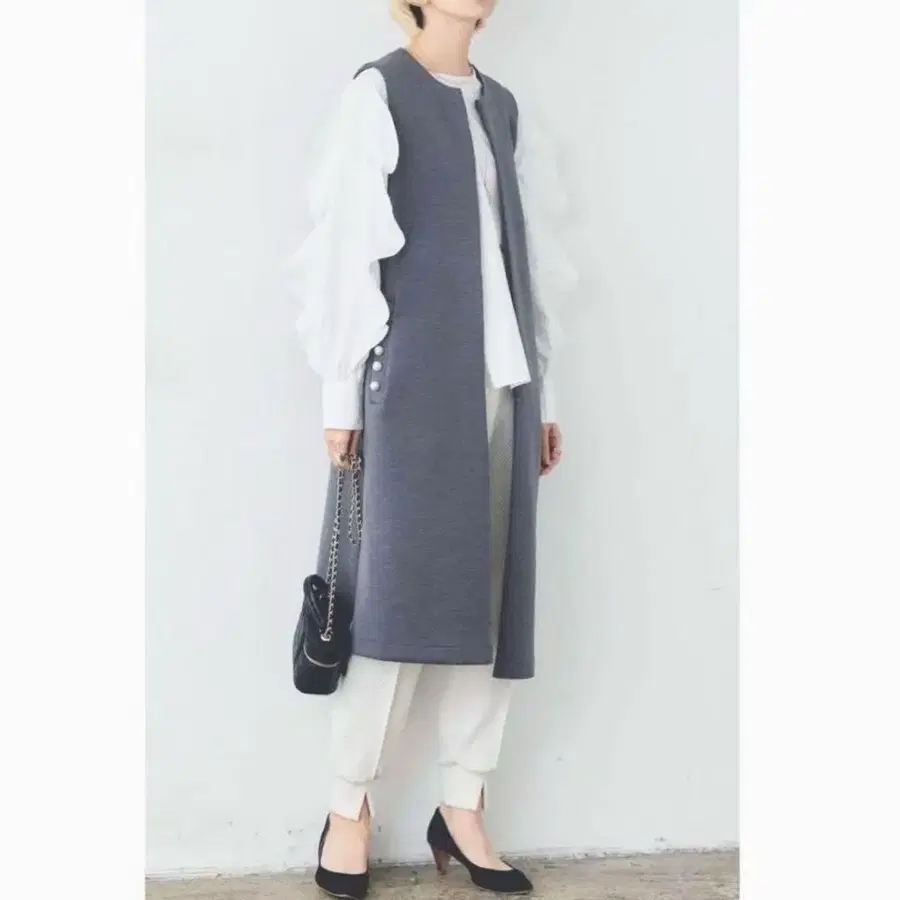 포켓 펄 장식 본딩 롱 베스트 그레이 frene