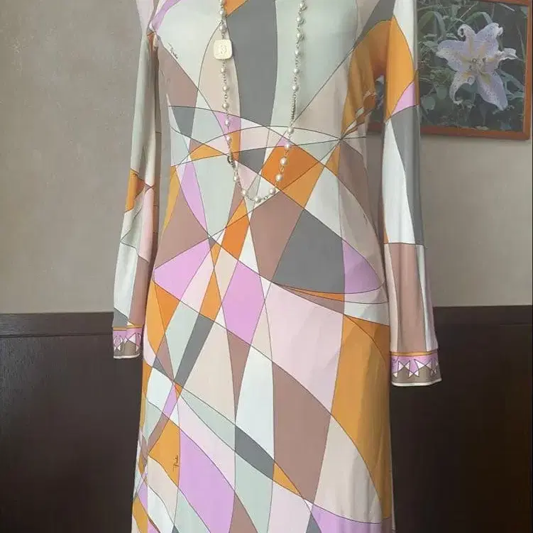 이탈리아제 에밀리오 푸치 핑크 원피스 긴팔 EMILIO PUCCI 기하학