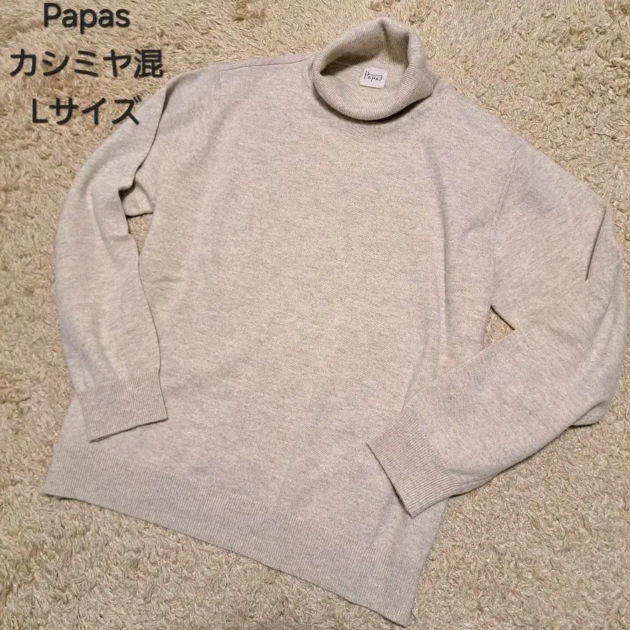 파파스 papas 하이넥 터틀넥 니트 울 캐시미어 스웨터 크림색 계열 사이즈 50 L 사이즈