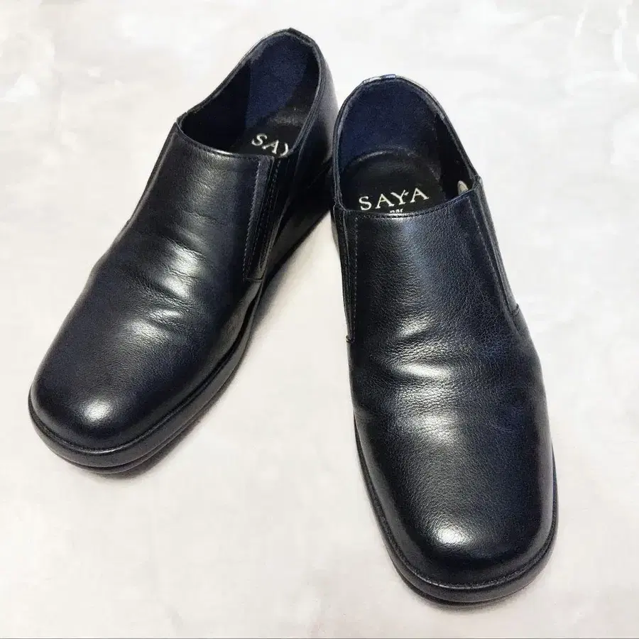 새상품급 사야 가죽 슬립온 밴딩 22.5 스퀘어토 크레이프솔