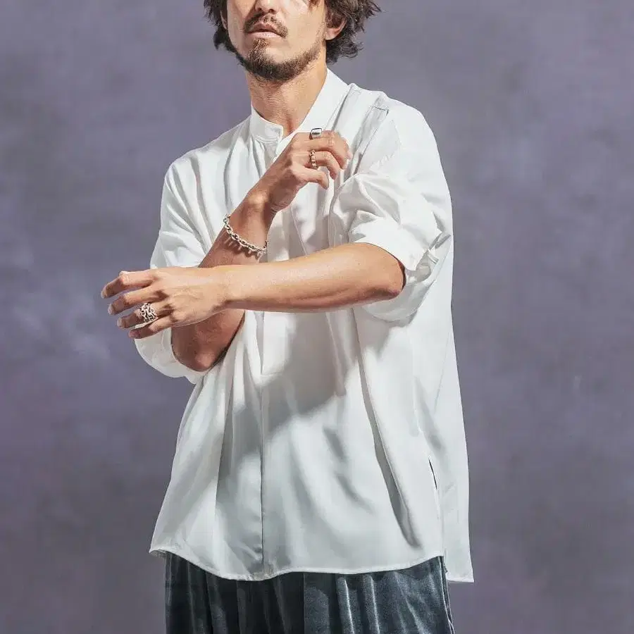 화이트 스탠드 카라 셔츠 Jih Nunc(지눙크) 풀오버 셔츠