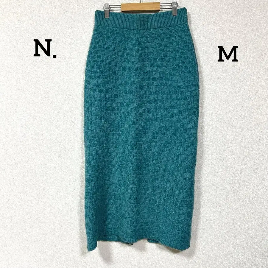 N. 케이블 니트 스커트 슬릿 터콰이즈 에메랄드 고급