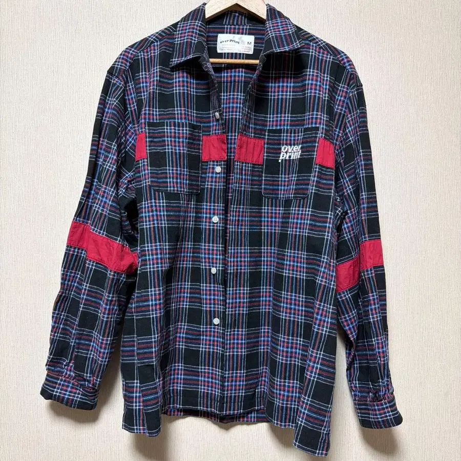 오버 프린트 체크 무늬 긴팔 셔츠 M