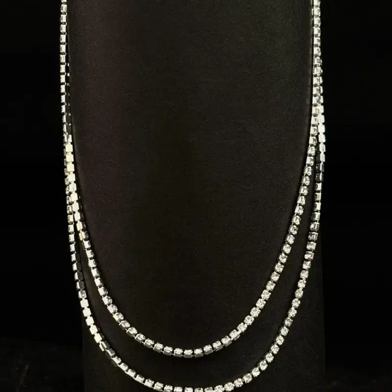 목걸이 더블 체인, 큐빅 (작은 알갱이 2mm), 실버