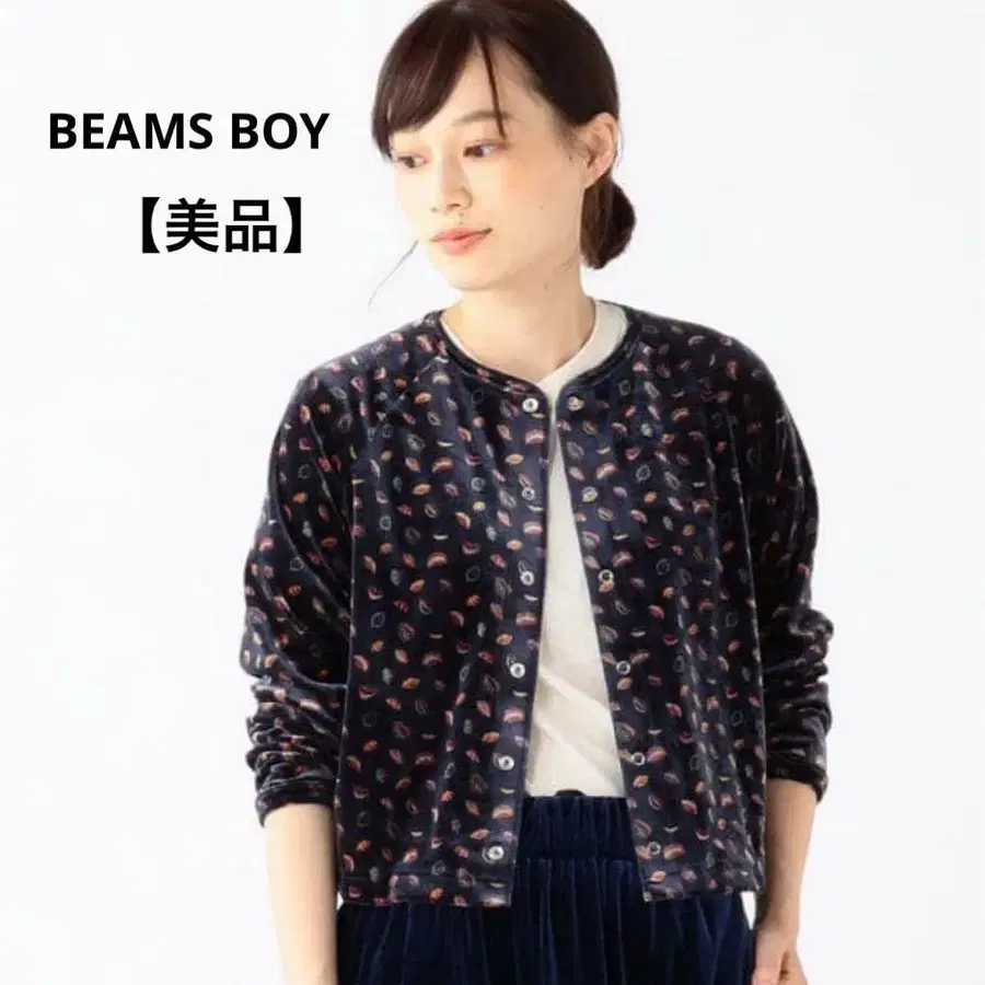 클래식한 잎 모티브가 인상적인 벨로아 가디건<BEAMS BOY> 별주 원단을 사용했으며, 형태는 스테디셀러 인기 스냅 가디건 타입을 채용했습니다.
