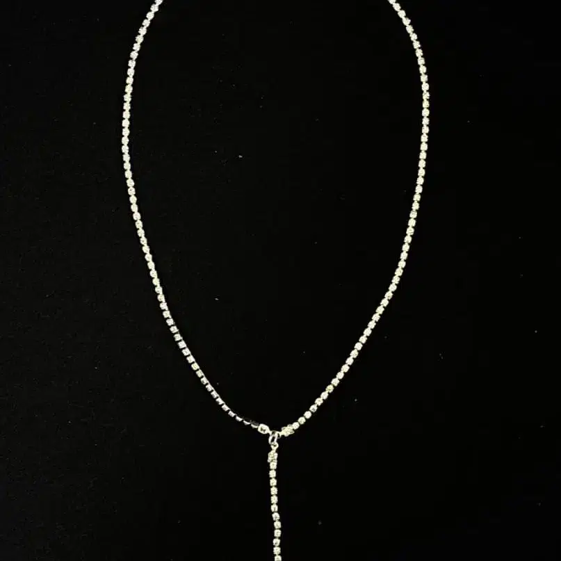목걸이 I (Y)형 디자인, 큐빅 작은 알갱이(2mm), 실버