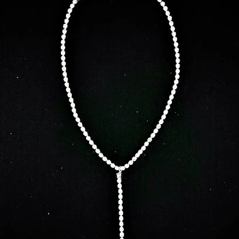 목걸이 I ( Y ) 형 디자인, 큐빅 ( 대형 4mm ), 실버