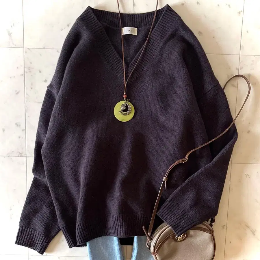 새상품급 이에나 IENA 캐시미어 혼방 AQUA V넥 풀오버 그레이