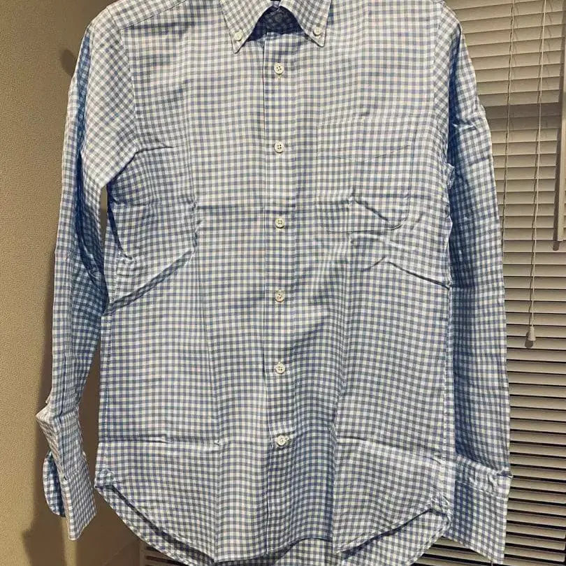 BEAMS F 버튼 다운 셔츠 37 깅엄 체크 스카이블루