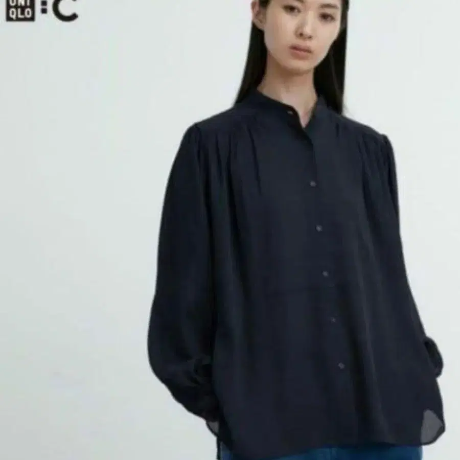 유니클로C 볼륨 슬리브 블라우스 긴팔 드레이프감 블라우스 비침 시어