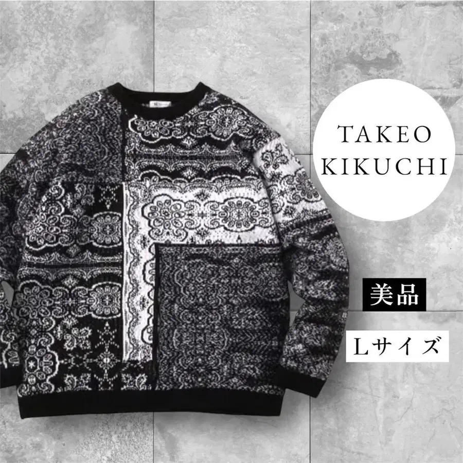 다케오 키쿠치 니트 크루넥 라메 자카드 스웨터 새상품급 L 사이즈
