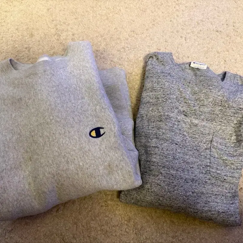 Champion 그레이 크루넥 트레이닝복 롱T 2장 세트