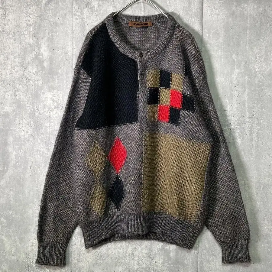 고급 이탈리아 키드모헤어 하프 버튼 니트 자카드 일본제