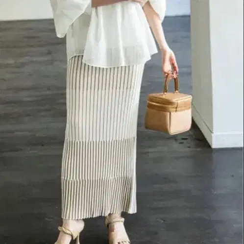 노블 랜덤 바이컬러 리브 니트 스커트