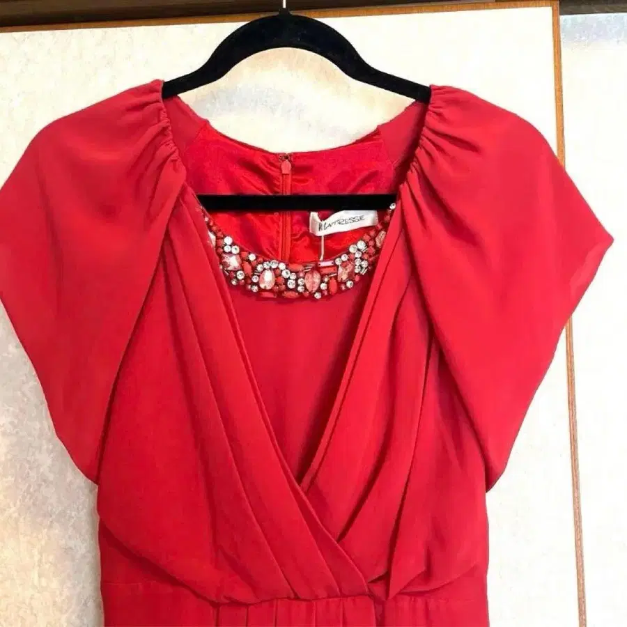 YAMADA 메틀리제 빨간색 플레어 슬리브 랩 드레스 M