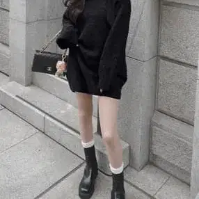 원 숄더 벨로아 리본 니트 미니 원피스 [dr796] black