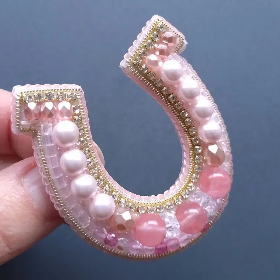 핸드메이드 비즈 자수 브로치 - 말발굽 호스슈 럭키 모티브