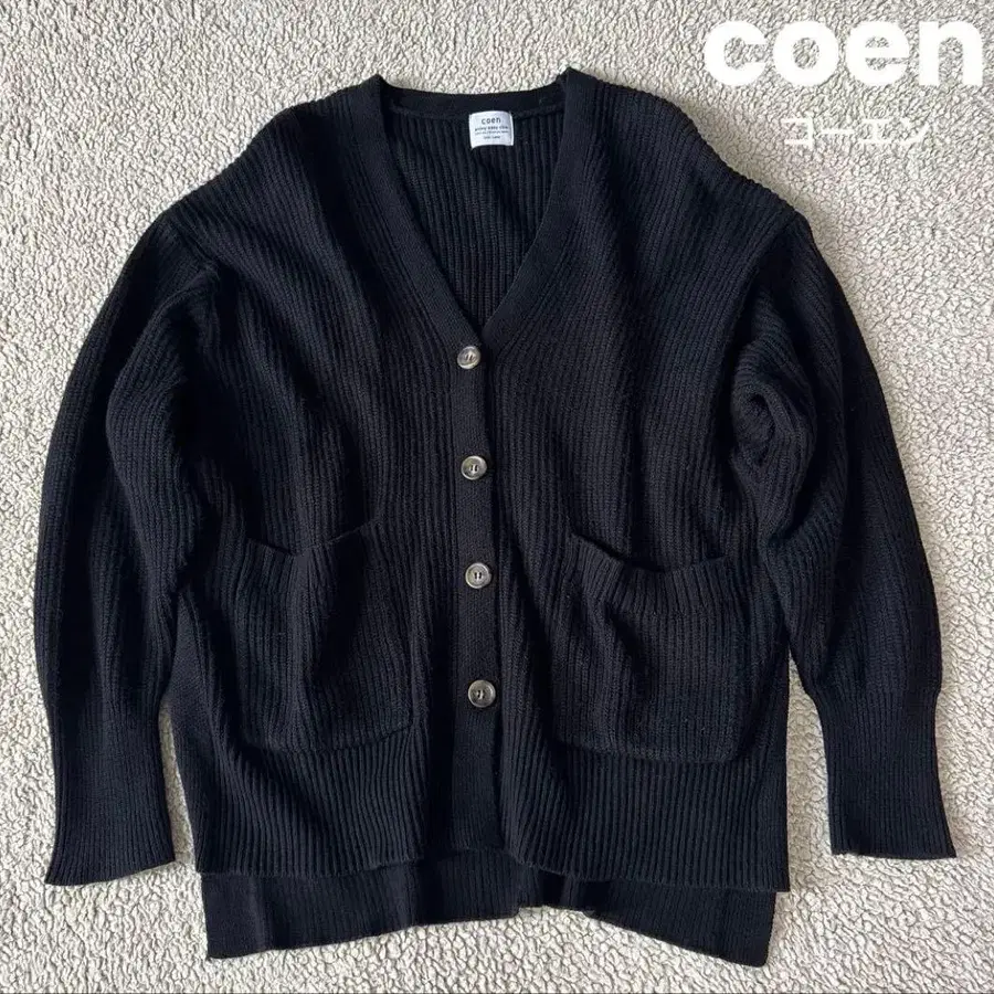 coen 코엔 리브 V넥 가디건 루즈핏 블랙 L