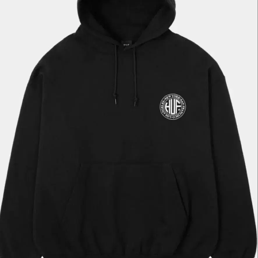 블랙 후드 부착 후드티 로고