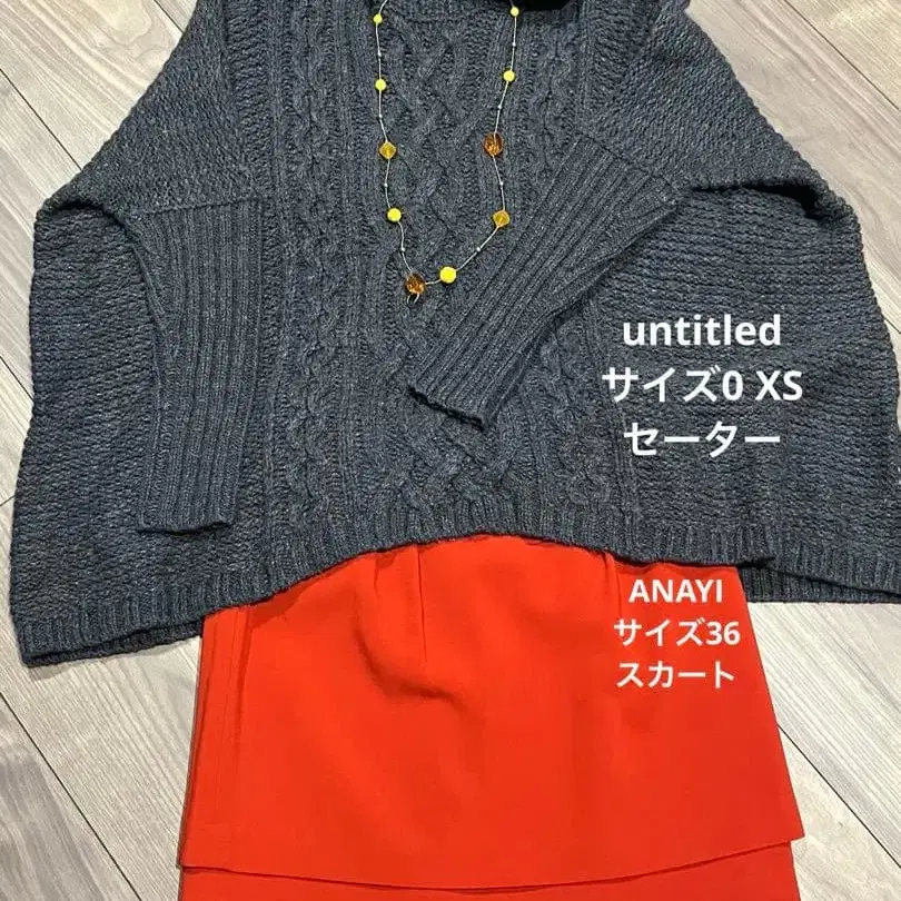 코디 세트 그레이 케이블 니트 & ANAYI 오렌지 스커트 셋업