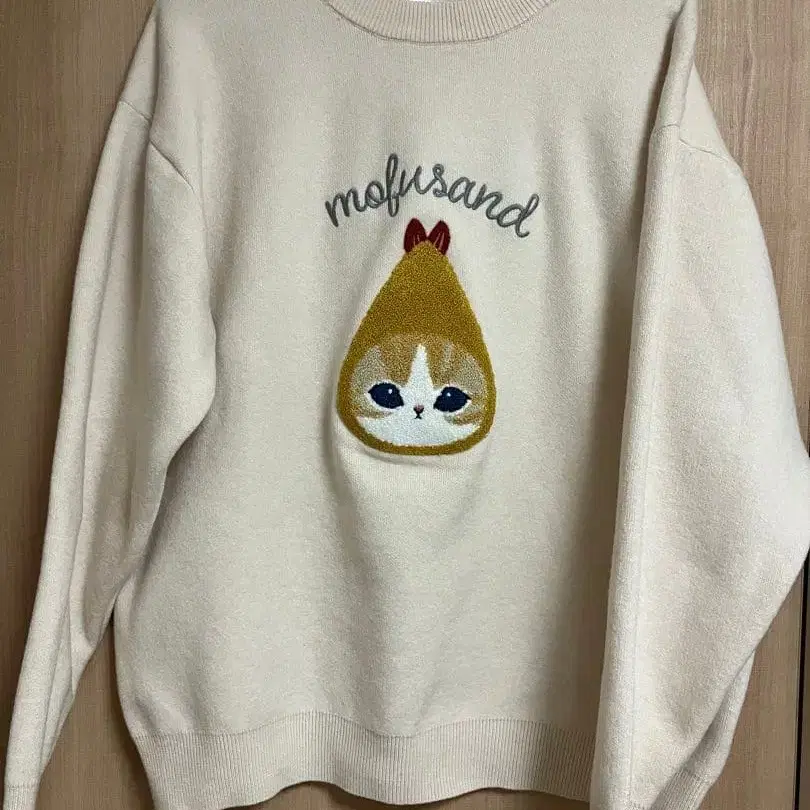 에비냥 모프 샌드 새우튀김 니트 스웨터 사가라 자수 아플리케