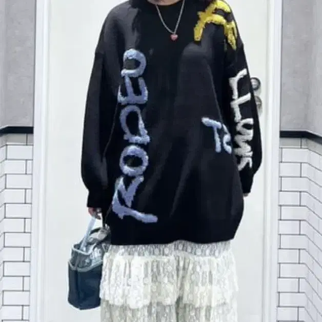 로데오 크라운 신상 레터링 로고 니트 원피스 BLACK
