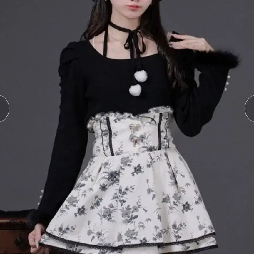 palelfy 퍼 달린 리본 소매 컨셔스 니트 블랙