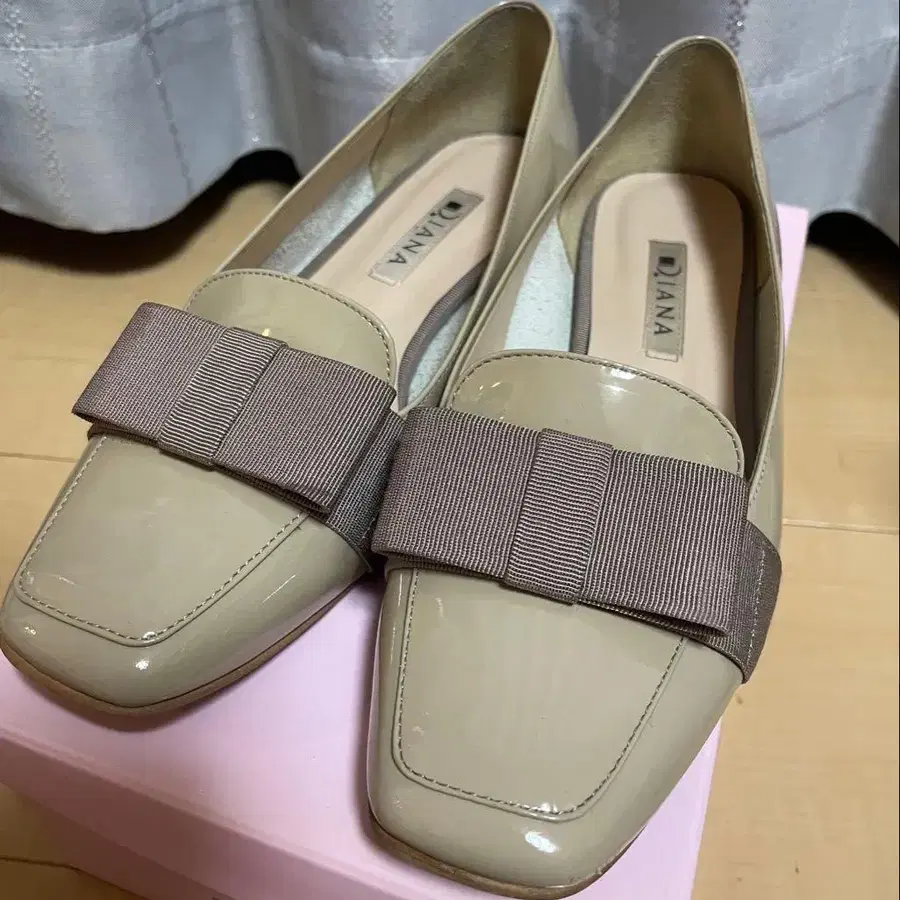 레어 DIANA 다이애나 베이지 더스티 핑크 리본 포함 로퍼