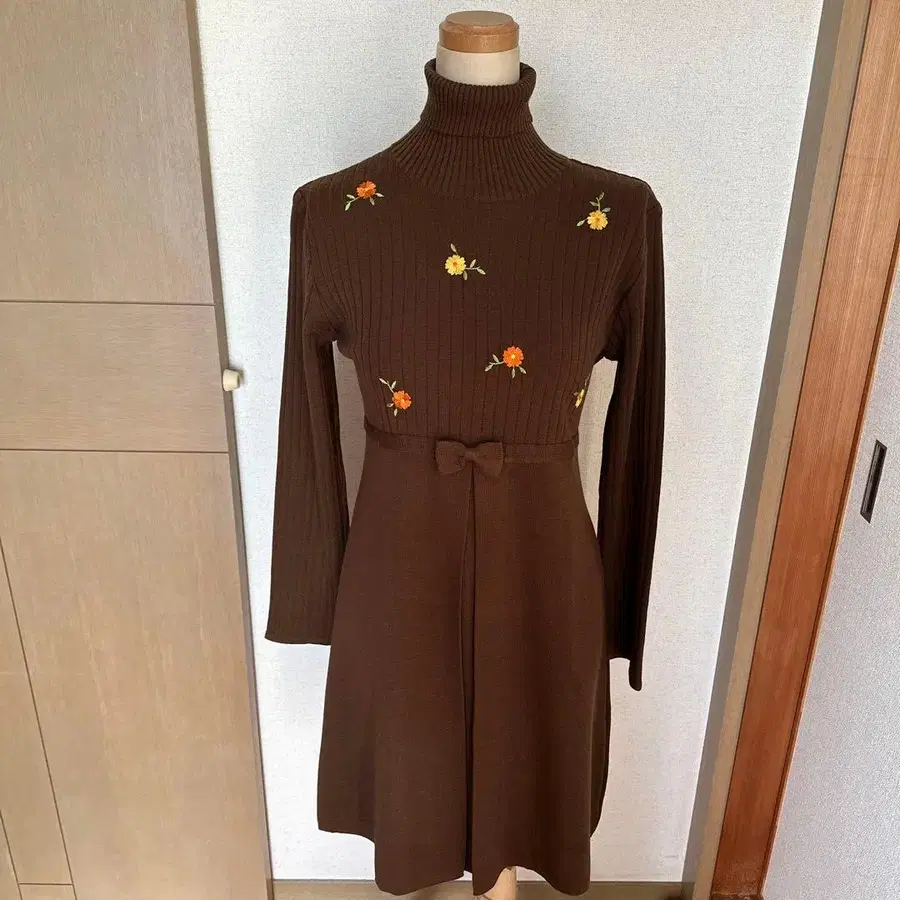 GALLERY VISCONTI 터틀넥 꽃무늬 자수 니트 원피스