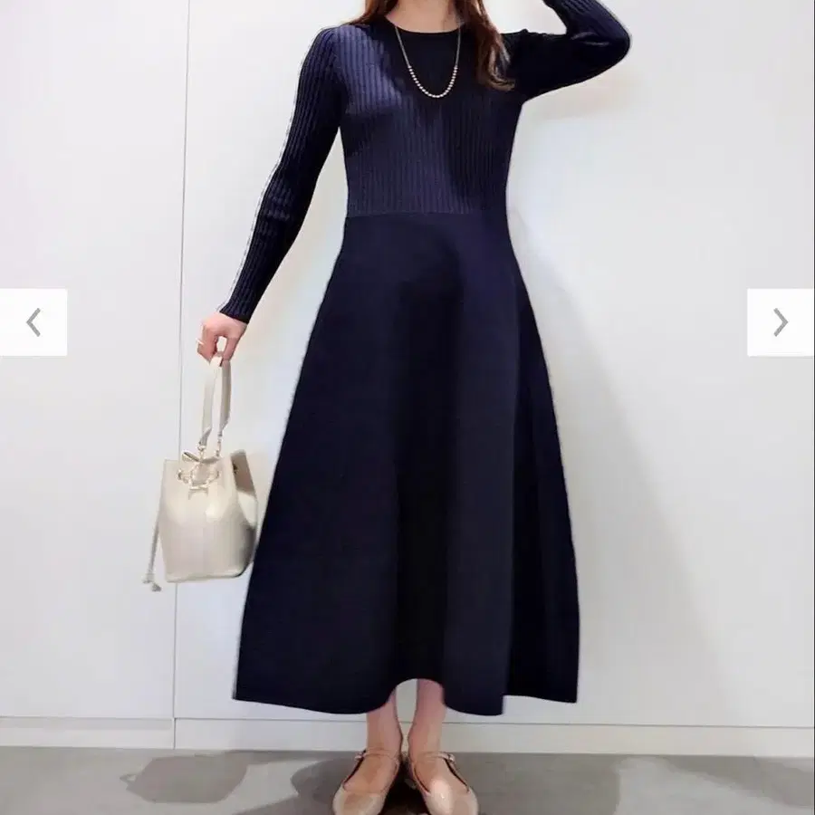 • [컨디션 최상] JUNOAH 세미 플레어 니트 원피스 바이컬러 네이비 M