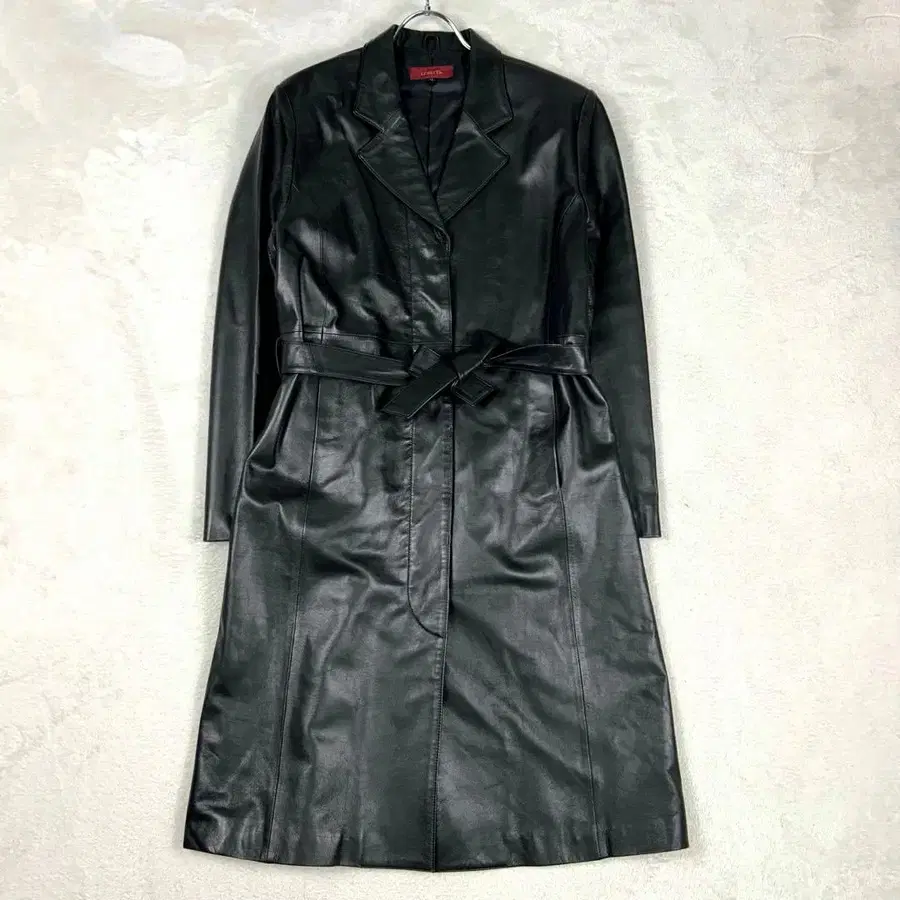 램 가죽 트렌치코트 벨트 A라인 플레어 롱 코트 L