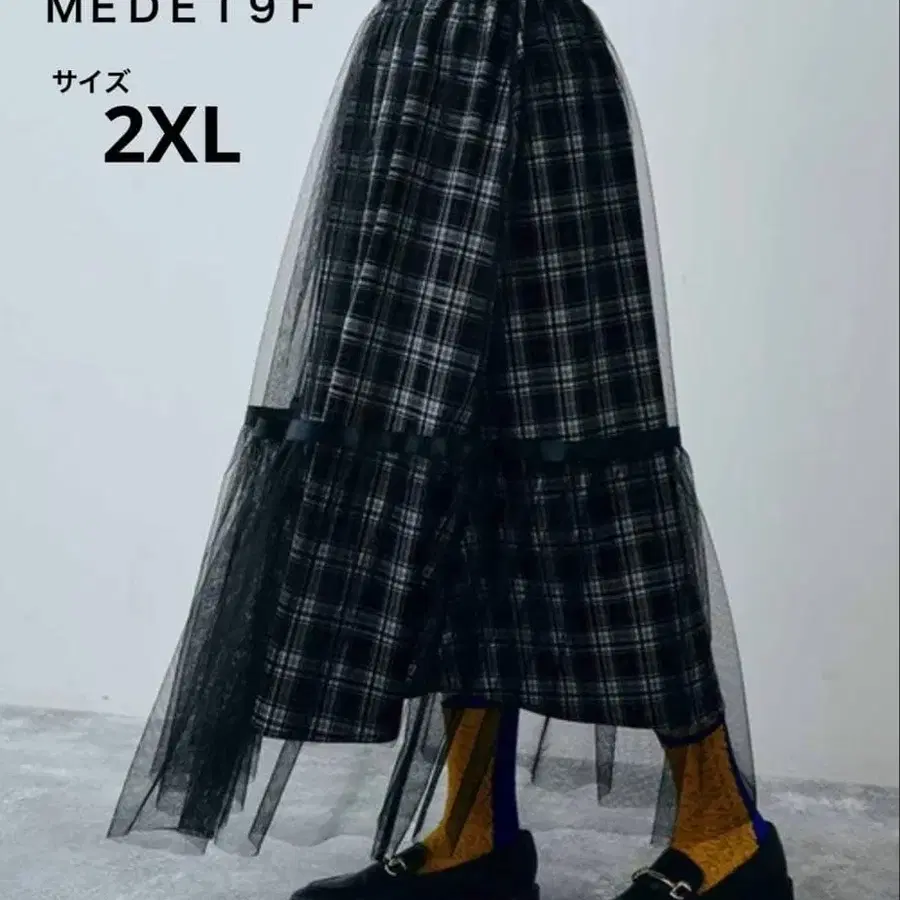 MEDE19F 튤 레이어드 체크 무늬 롱 스커트 블랙 빅