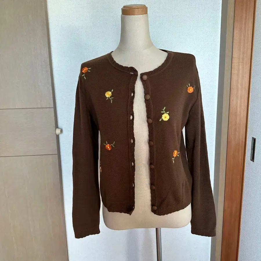 GALLERY VISCONTI 브라운 꽃무늬 자수 긴팔 가디건