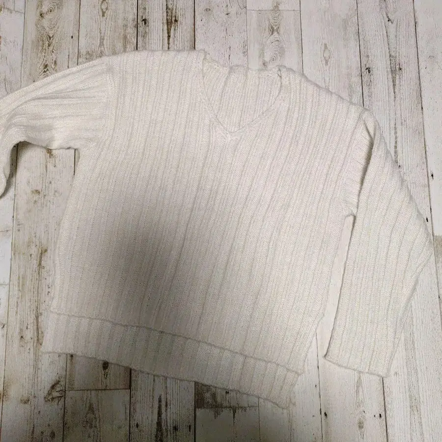 아이보리 V넥 리브 니트 스웨터 M 사이즈