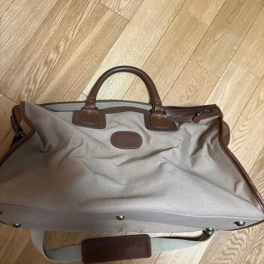 GHRUKA의 아이코닉 모델 중 하나인 No.2 EXPRESS입니다. 카키 코튼 트윌과 빈티지 가죽의 조합. 레지스터 No.로 보아 2000년산으로 추정됩니다. 견고한 만듦새와 소재의 우수함에서 오는, 일반적인 보스턴 백과는 차원이 다른 압도적인 존재감입니다. 두껍고 부드러운 카키 코튼 트윌 유연하고 윤기 있는 빈티지 가죽 지퍼를 열고 닫는 것만으로도 설레는 비밀 기지 같은 무수한 수납 공간 보기만 해도 어딘가 떠나고 싶어지는, 이 가방은 그런 마음을 느끼게 해줍니다. 사이즈 세로: 약 31.5cm 가로: 약 50cm 폭: 약 23.5cm 보관에 따른 약간의 얼룩과 마찰, 보풀이 있지만, 상태는 거의 데드스탁입니다. 장기 보관으로 인해 가죽이 굳어 있습니다. 자세한 상태는 이미지를 확인해 주시면 감사하겠습니다. 배송 시 접어서 수납하므로 양해 부탁드립니다. 정품 숄더 스트랩, 이름표가 포함됩니다.