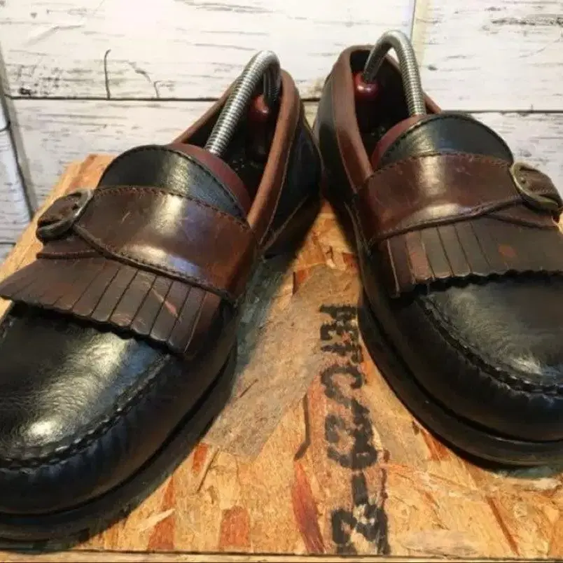 콜한 프린지 가죽 로퍼 블랙 브라운