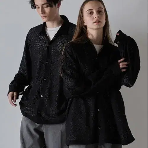 CLEL 벌룬 소매 루즈 레이스 셔츠 블랙 M 사이즈