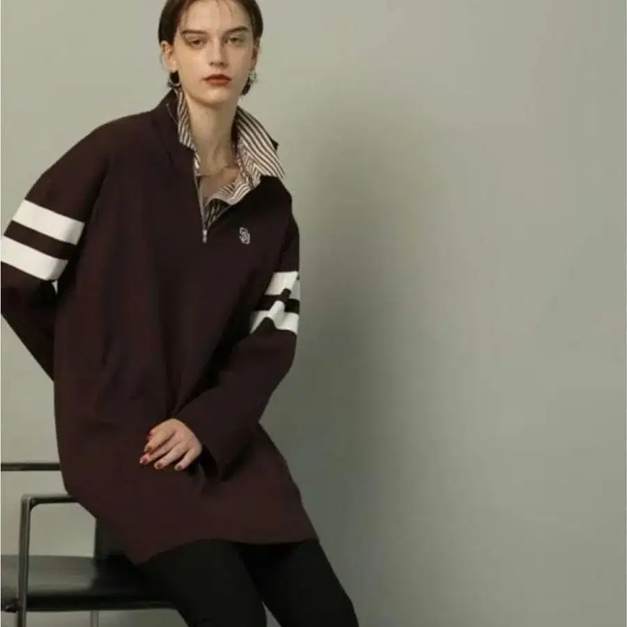 CADUNE 하프 집 니트 원피스 보르도