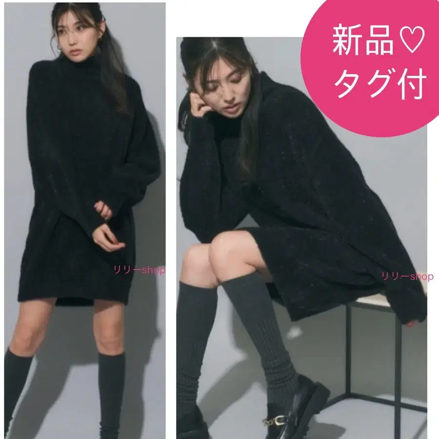 택 포함 새상품 마이 스트라다 라메 니트 원피스 블랙