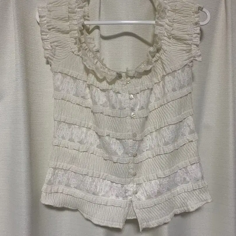 빈티지 아이보리 프릴 레이스 오프숄더 상의
