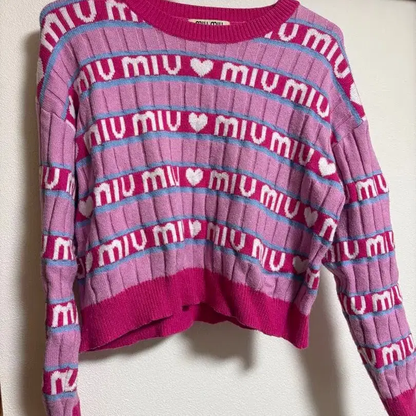 스트라이프 하트 무늬 니트 스웨터