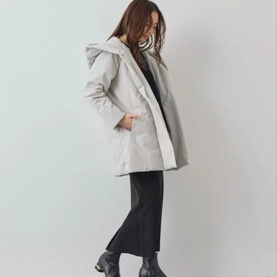 매트한 질감이 고급스럽고 차분한 인상의 다운 코트.