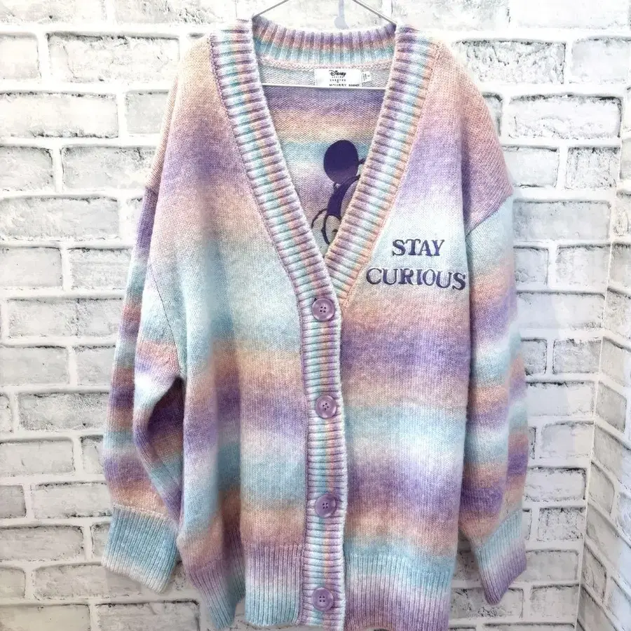 마우지 디즈니 그라데이션 니트 가디건 미키&플루토 자수