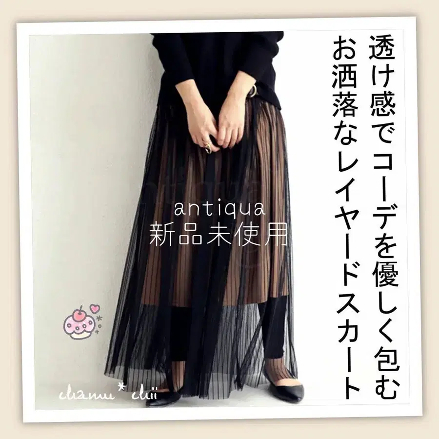 antiqua [ 새상품 블랙 ] 완판*스트라이프 튤 롱 스커트