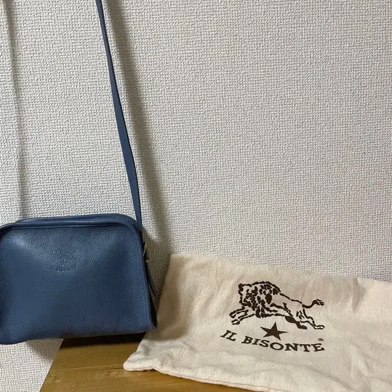 IL BISONTE 스카이블루 가죽 숄더백 수납 가방 포함