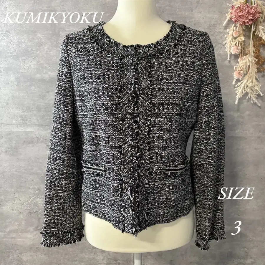 KUMIKYOKU 트위드 프린지 자켓 빅 사이즈 3 블랙 계열