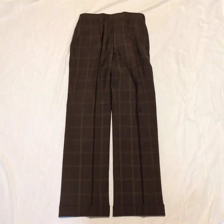 차분한 브라운 베이스의 체크 무늬가 특징인 남성용 슬랙스입니다.
