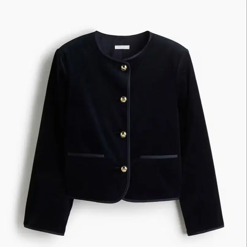미사용 택 포함 H&M 벨벳 노카라 자켓 네이비