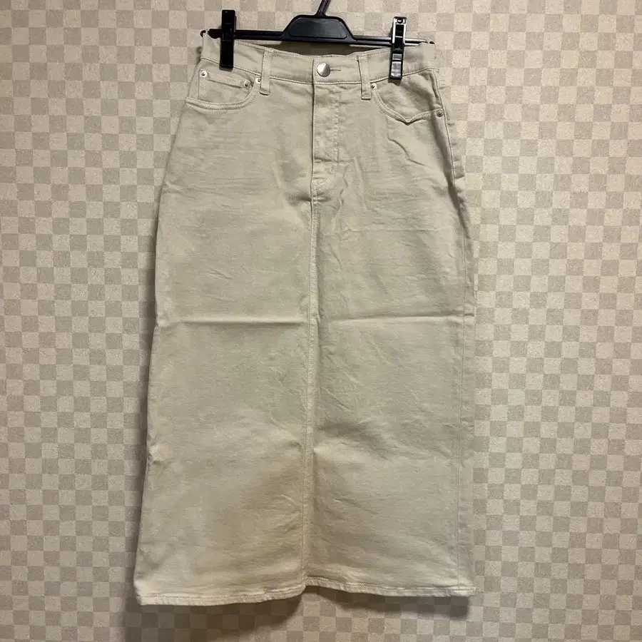 23구 데님 청바지 스커트 1회 착용. 비품입니다. 사이즈 - M 컬러 - 베이지 계열 패턴 - 무지 계절 - 올 시즌 얼룩, 찢김, 냄새 등 - 없음
